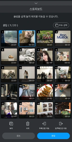 저는 여행 사진을 시간순으로 정리해 첨부했는데, VLLO는 스토리보드 형식을 제공해줘서 편집 중 언제든지 직접 배열을 바꿀 수 있다는 점이 특히 편리했습니다. 덕분에 사진을 일일이 순서까지 고려해 업로드하지 않아도, 작업 중 흐름에 맞게 재배치할 수 있어서 영상의 전개가 훨씬 자연스럽게 완성되었어요. 입문자 입장에서는 편집 전 계획 없이도 영상의 구성 흐름을 잡을 수 있는 UX가 큰 부담을 덜어주는 요소로 다가왔습니다.