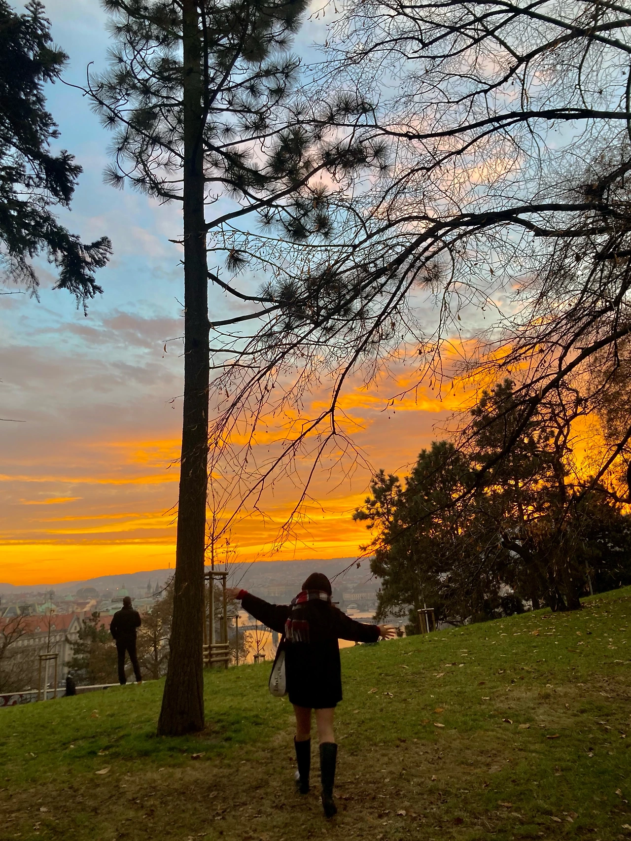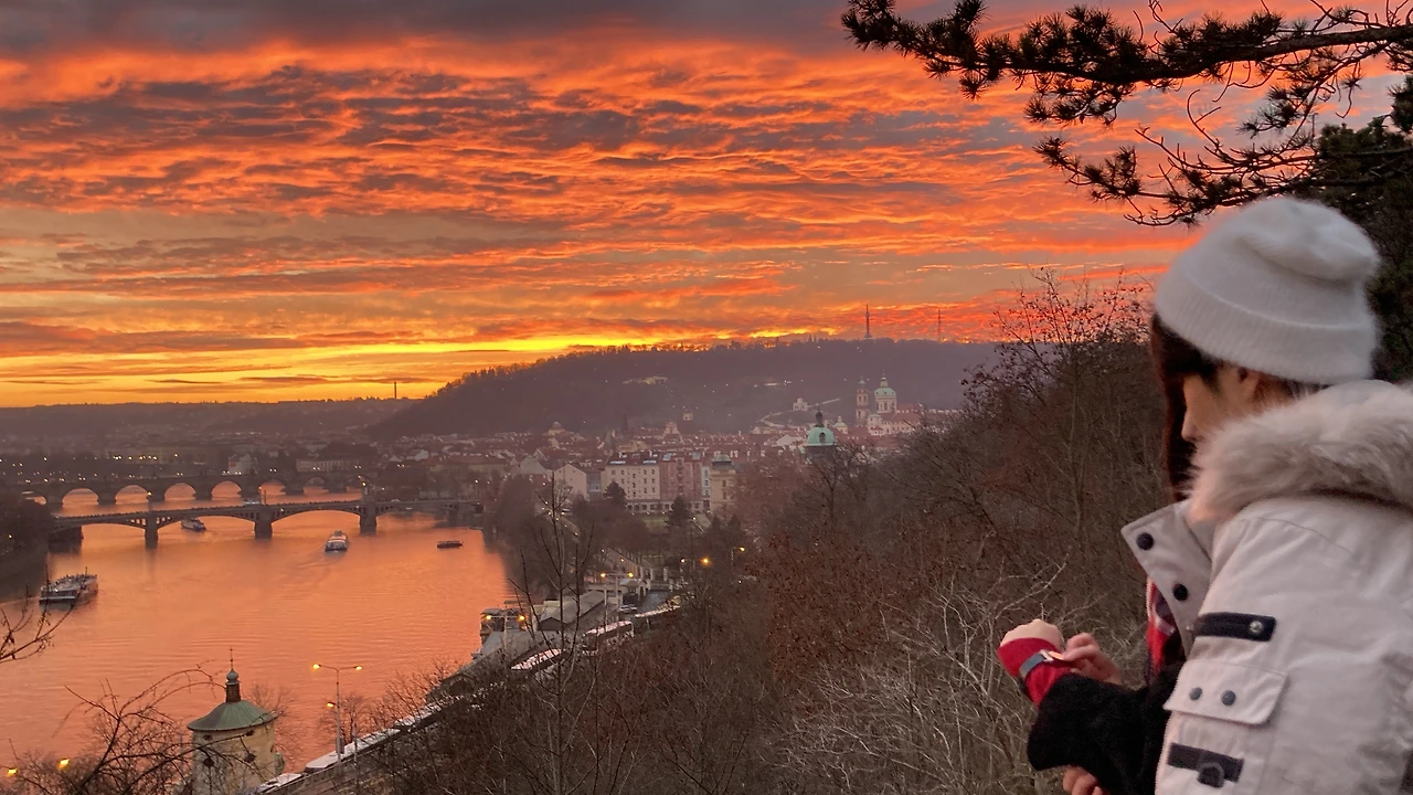 마치 하늘은, 우리의 기도를 듣고 있다는 듯, 점점 하늘을 빨갛게 물들이기 시작했다. 하루종일 흐려 예쁜 노을은 볼 수 없을 거라던 일기예보와는 달리, 나는 태어나서 제일 예쁜 일몰을 2022년 12월 25일, 프라하에서 민이와 함께 보게 되었다.