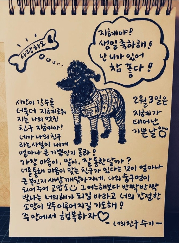 하얀 도화지는 언제나 내 심호흡을 크게 하게 만든다. 말도 안 통하고 아는 사람 하나 없는 곳으로 여행을 떠나는 것보다 나는 하얀 도화지 앞에 섰을 때가 더 두렵고 떨린다. 그럼에도 내가 붓을 들고 시작할 수 있는 것은, 내 마음을 보여주고 싶은 사람이 있기 때문이고, 그 사람에게만 보여주고 싶은 내 예쁜 마음이 있기 때문이다.