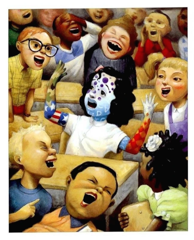 친구들은 카밀라를 보고 웃고, 놀리고, 새로운 무늬로 변신해보라며 재촉하기도 한다.
