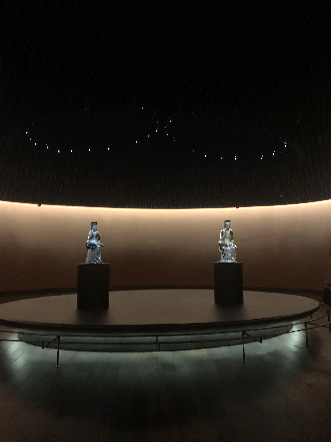들어가자마자 보이는 우아한 대리석마감의 넓은 홀. 하도 여러 번 오다 보니 전시된 유물은 다 봤고, 설명 읽어봤고, 사진 찍어 놓은 것도 있어서 급한 것 없던 나는 유유히 걸어 들어가고 있었는데, 오른편에 못 보던 전시실이 있었다. 디지털 실감 영상관. 음. 디지털. 괜찮을까. 그 직전에 갔었던 대영박물관에서도 스톤헨지에 대한 디지털영상을 상영하는 특별전을 했는데, 웅장한 스톤헨지를 큰 스크린으로 보여주는 것은 좋았지만 TV에서 보는 일반 다큐멘터리와 크게 다르지 않았고, 대만의 국립고궁박물원에도 중국의 유명한 회화 속을 날아가는 실감영상을 보여준 적 있었는데 약간 지루했달까. 어디서 견학을 왔는지 아이들의 와글와글 하는 소리가 밖에까지 들려 살짝 망설여졌으나, 국립중앙박물관은 어떻게 실감영상을 만들었나 한 번 들어가 봤다.
