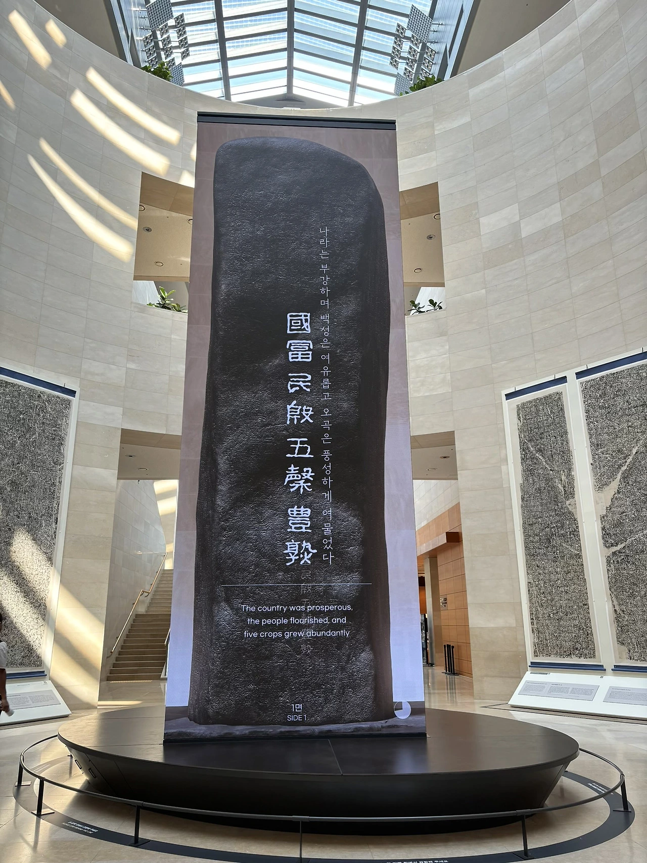 2024년 5월에 보았던 디지털 광개토대왕릉비 전시도 정말 좋았다. 한 문장 한 문장을 따서 한국말과 영어로 번역이 순서대로 나와서 광개토대왕비 전문의 내용을 시각적으로 이해하고 음미할 수 있어 정말 훌륭했다. 실물로 볼 수 있다면 얼마나 좋을까.