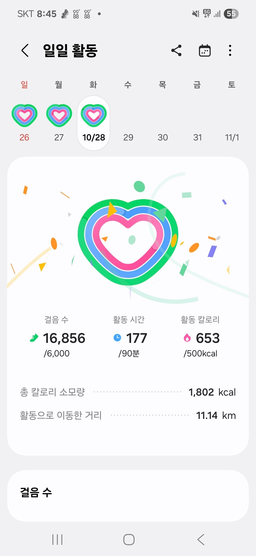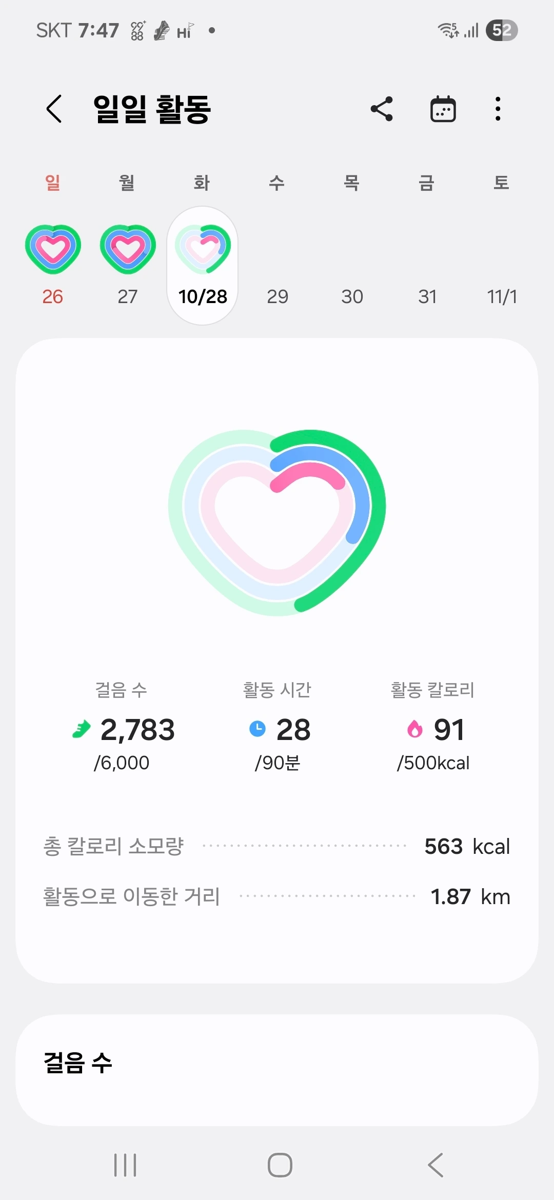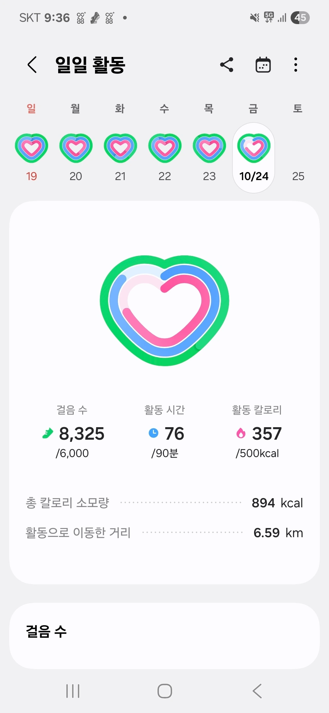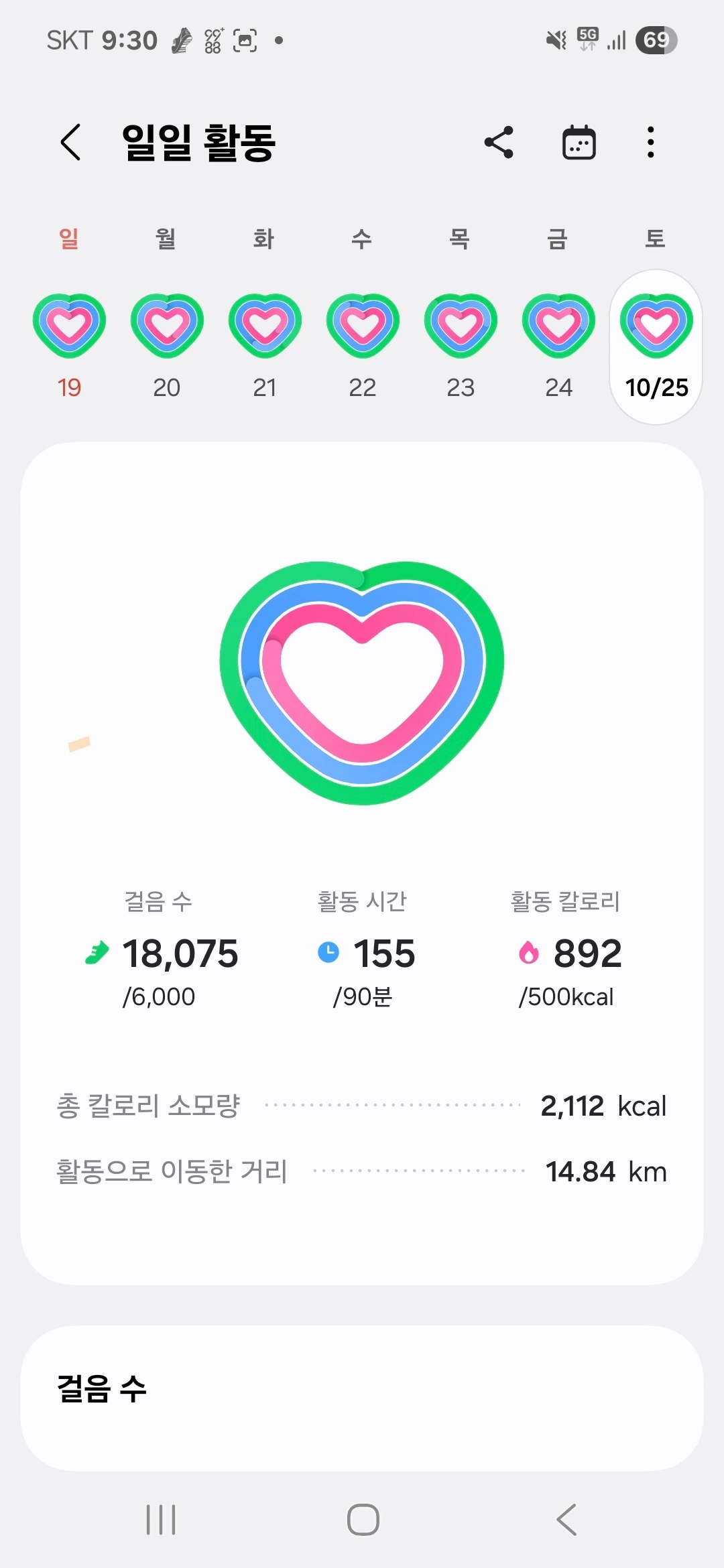 - 공원에서 빠른 걷기 및 러닝 30분, 스쾃 30개, 스트레칭 포함 10분 운동 40분 완료
