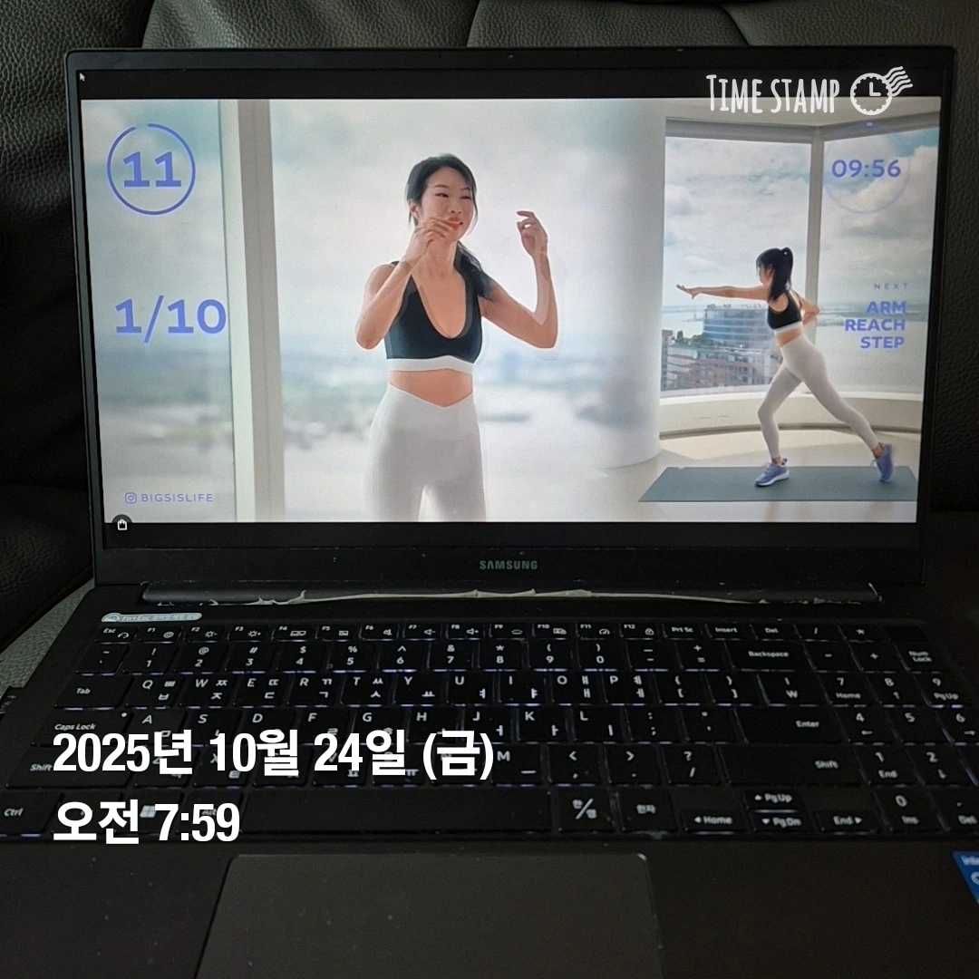 - 빅씨스 언니 전신 유산소 홈트 20분, 스쾃 50개, 브리지자세 10분 공복운동 30분 완료