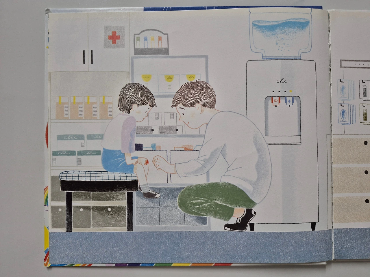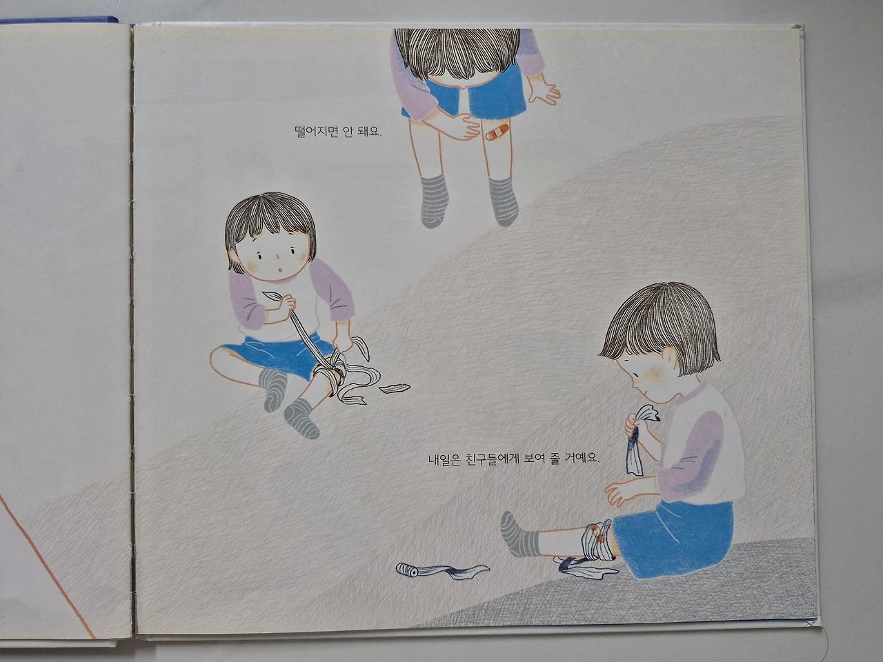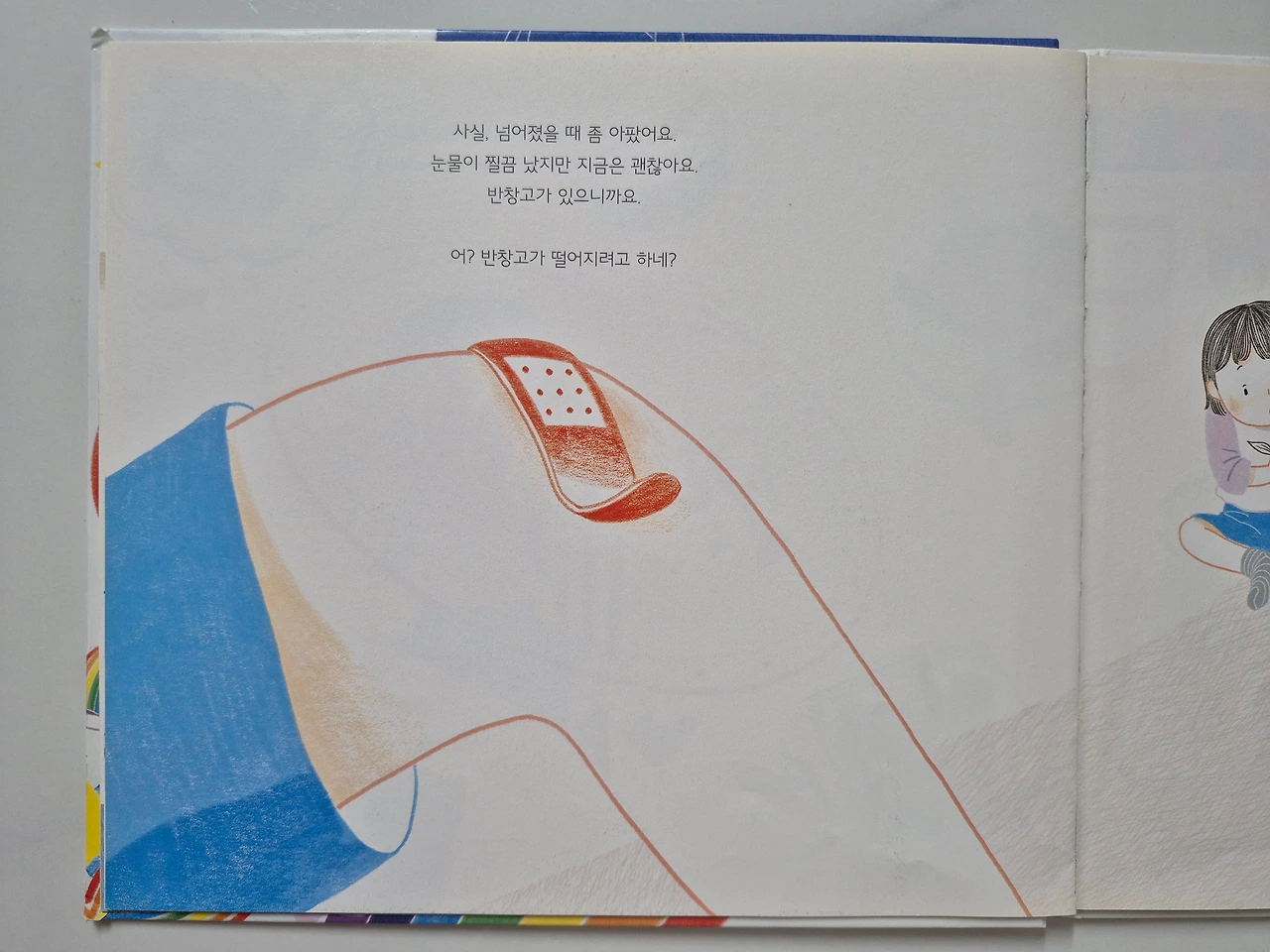 아이: 네네. 무릎이 까져서 속상하고 아파요. 얼른 집에 가서 밴드를 붙여주세요.