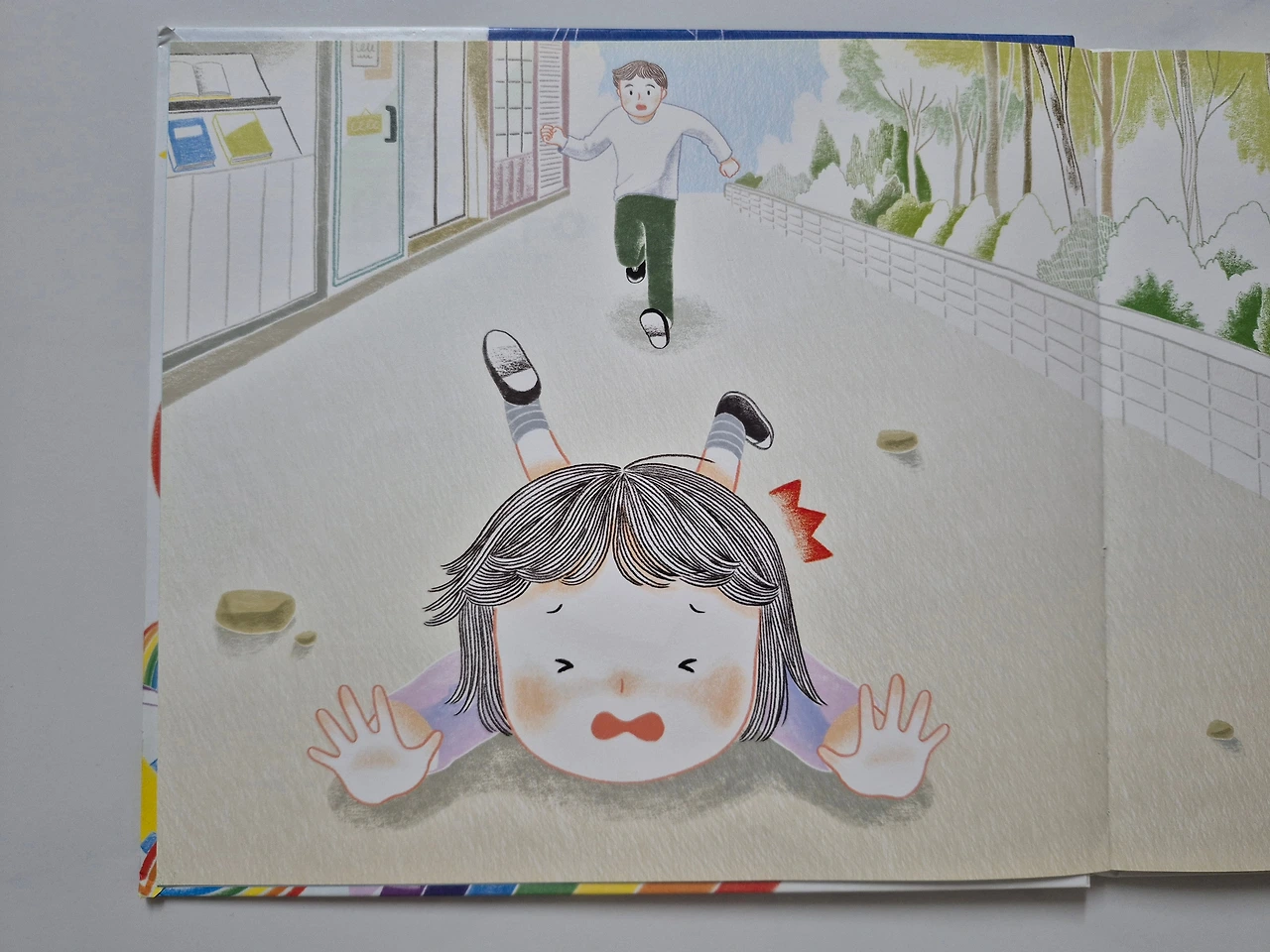 엄마: 00야, 넘어졌는데 무릎은 괜찮아? 어때? 많이 아팠지?