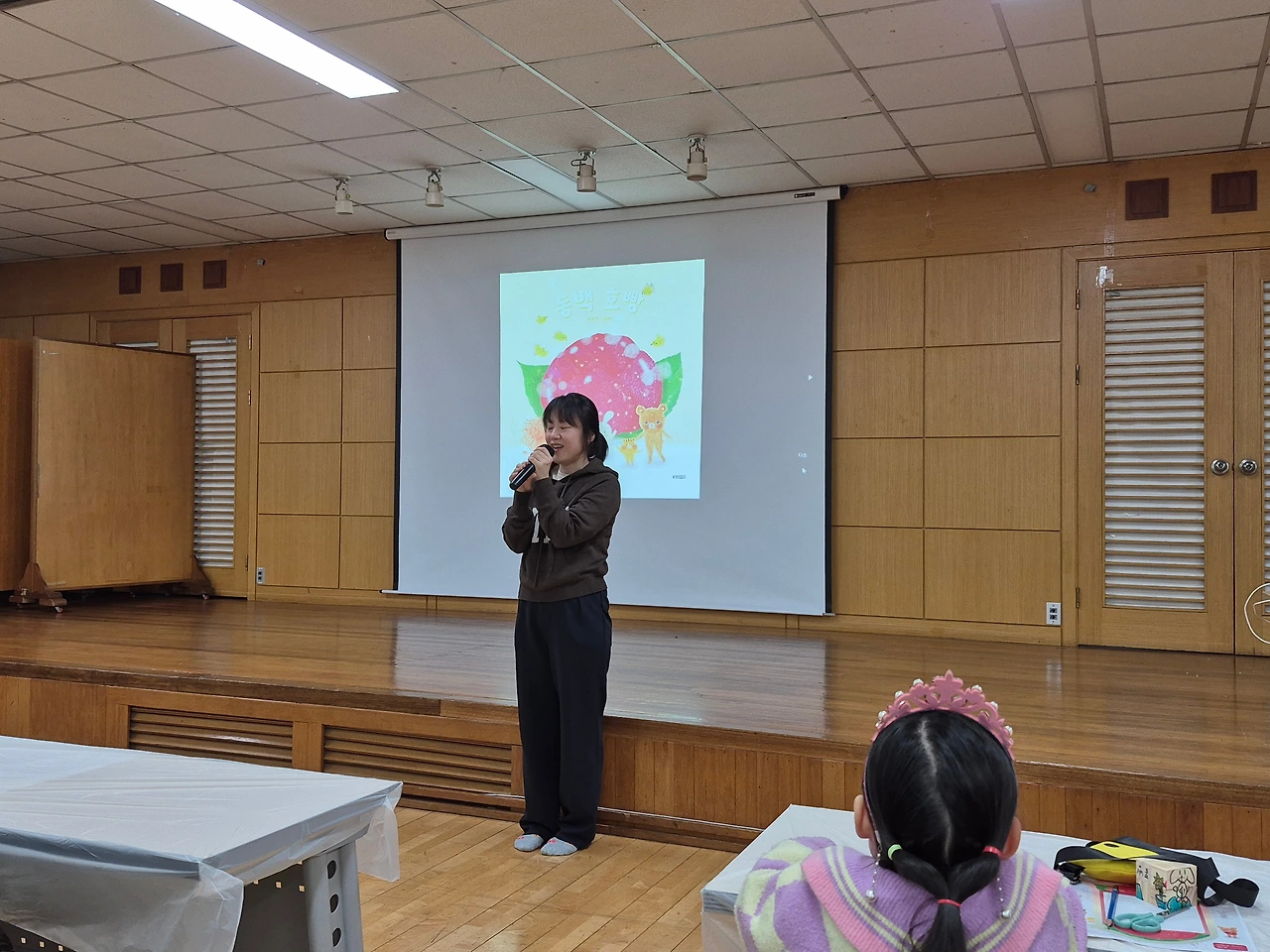 그림책 큐브를 만드는 과정이 끝나고 드디어 백유연작가가 작년 12월에 출간한 동백호빵 책을 읽어주었다.
