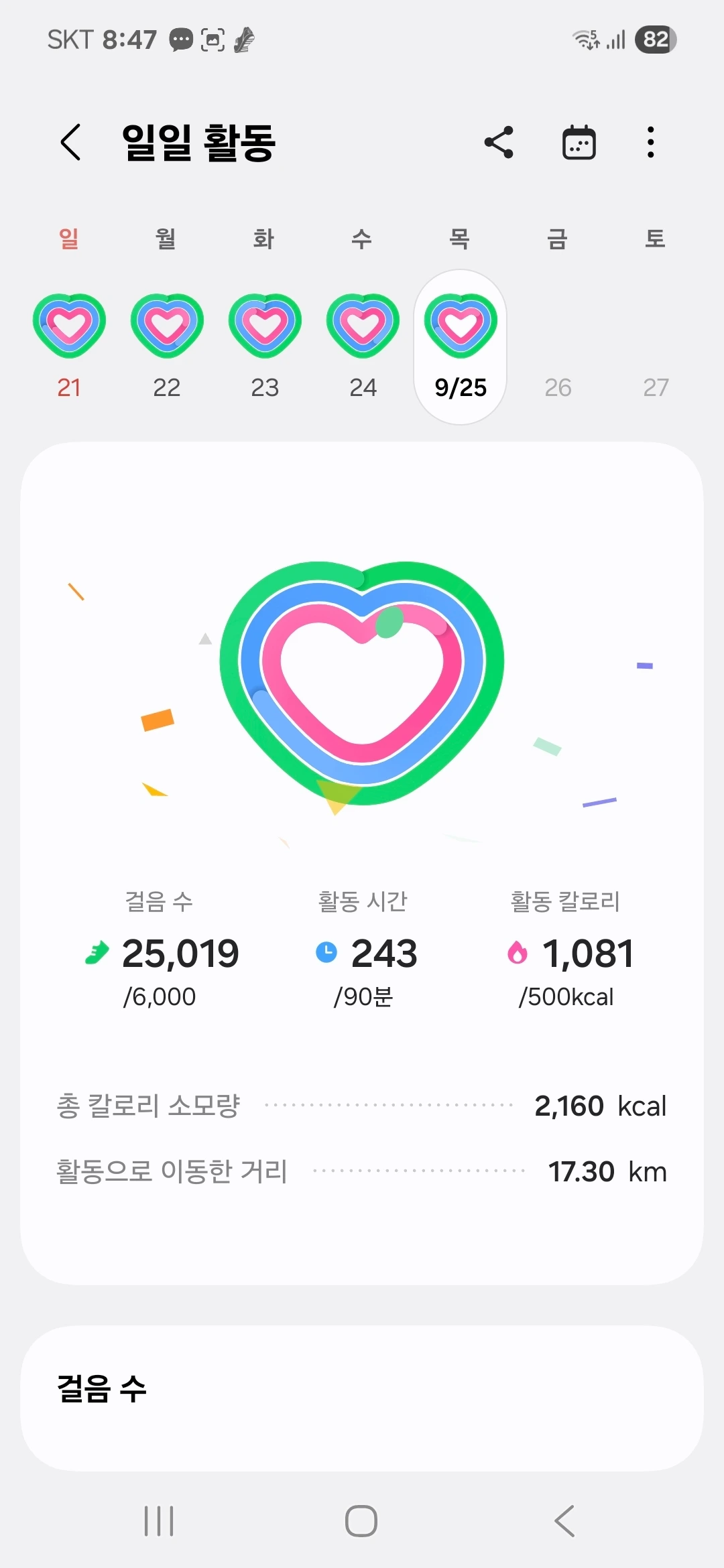 - 걷기, 스쾃 30개, 근력운동 및 스트레칭 32분 총 공복운동 70분 완료