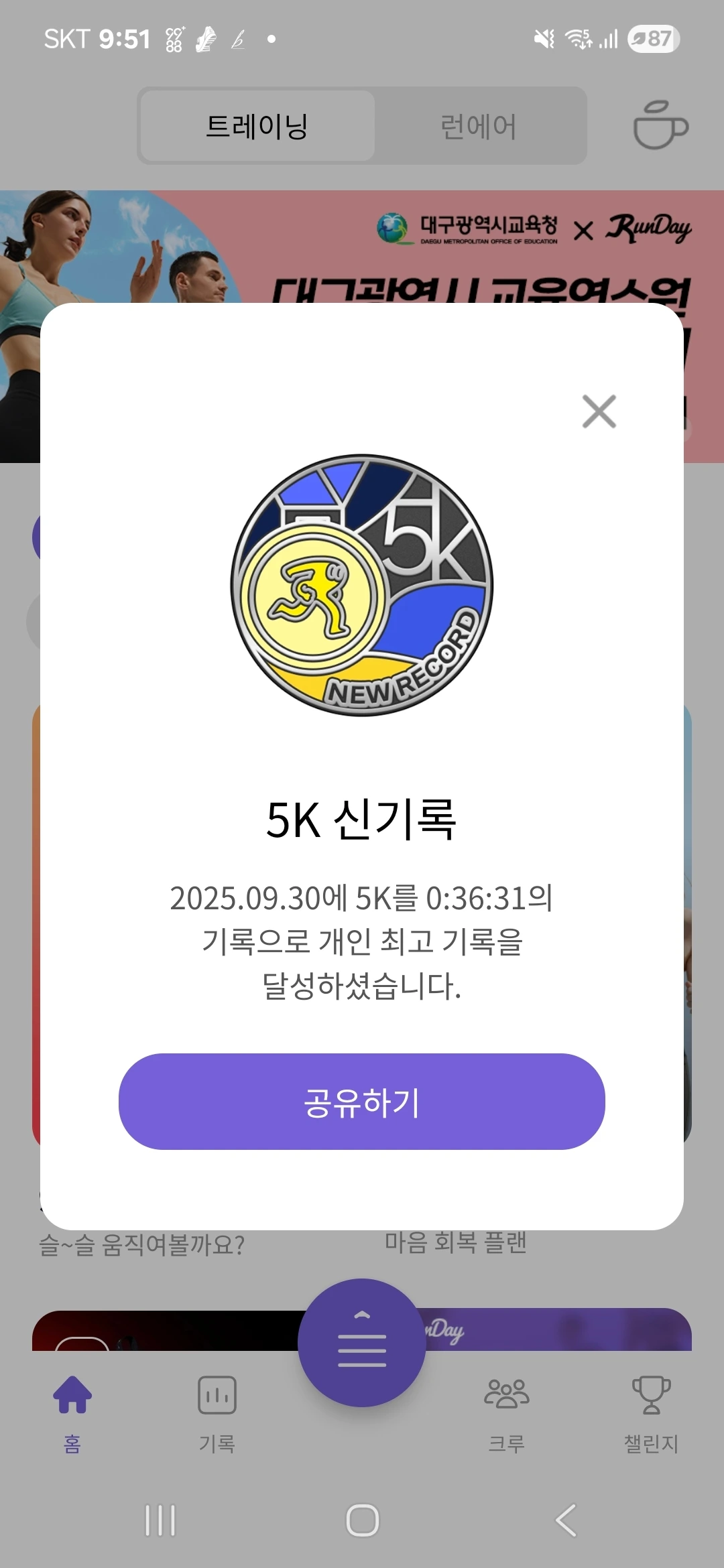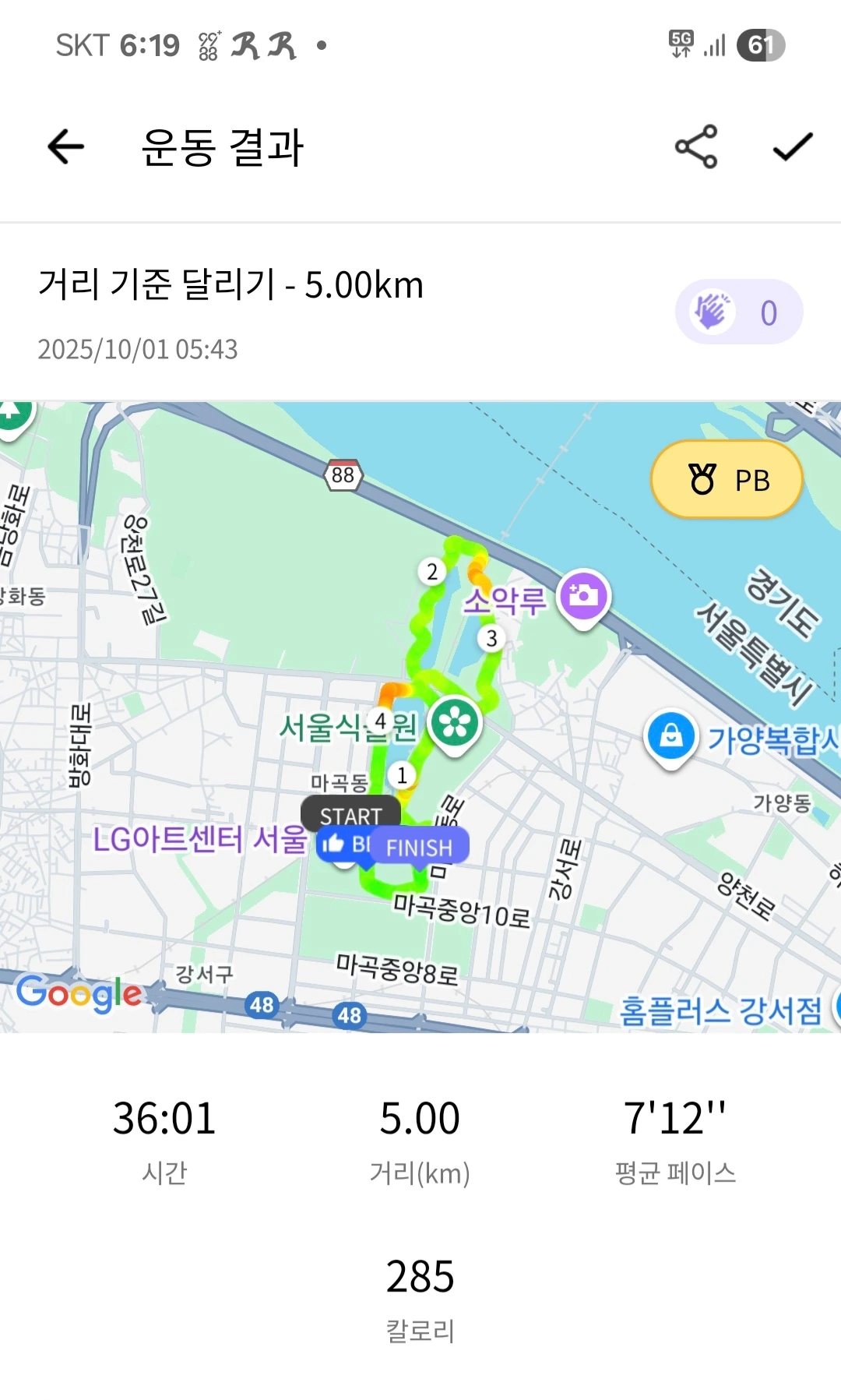 처음엔 달리기를 하면서 부상 없이 완주하는데 목표를 두자 했는데 점차 달리는 속도가 빨라지고 페이스나 전체 소요시간이 단축되자 욕심이 생겼던 거 같다. 다시 원래의 초심으로 돌아가서 정해진 시간 내에 차근차근 나만의 속도와 방향으로 안전하게 부상 없이 5km 마라톤을 달리고 싶다.