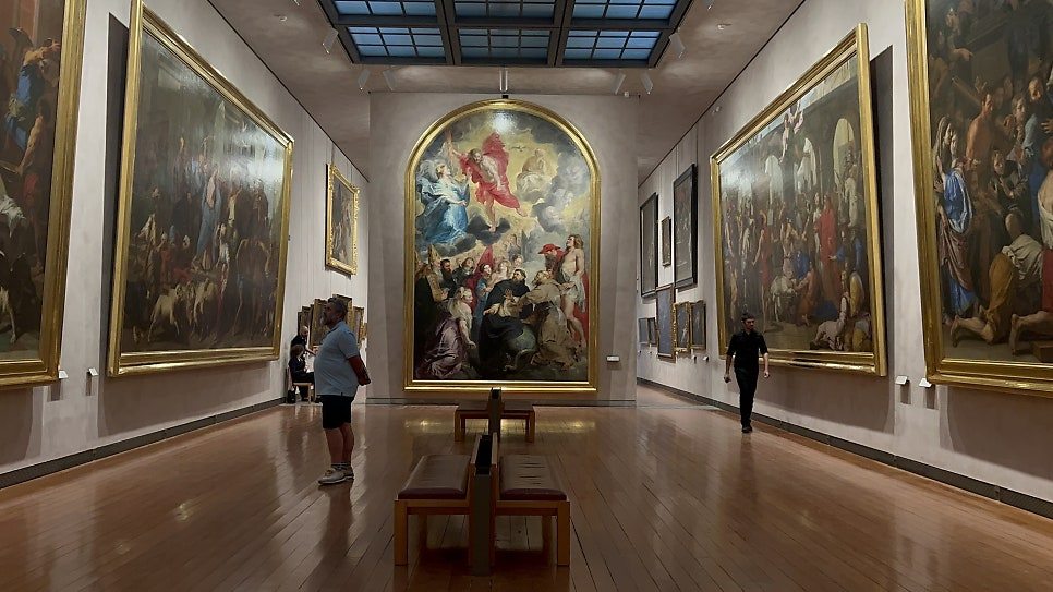 상상해봐. 나는 17세기 어느 시골 마을의 평범한 과일 장수야. 근근이 하루하루 사는데 글도 모르고 여성이라 제대로 된 교육도 못받았어. 허허벌판의 땅에 살며 유일하게 본 그림이란 저 대문짝만한 그림. 스테인드 글라스 사이로 들이치는 수만개의 빛. 그리고 장엄한 오르간 소리. 맞이한 작품 속 목소리가 '타락하면 반드시 신께서 벌을 내릴 것이다.' 라고 전하면 그들은 뼈저리게 피부로 이 명령을 흡수한다. 그림이 살아 움직여 나에게 번개를 내리 꽂을까 두렵기까지 한다. 이 그림 한 점 한 벽면이 그들에게는 바이블이고 교리였던 것이다. 절대적 도덕기제로 작동한다.