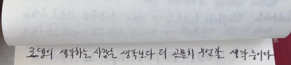한 글 한 단어 마다 영상처럼 그 고유성이 떠오르던 글. 얼마나 한자 한자를 눌러 담았으면, 한 장에 5개월이 느껴지던 글. 이 글은 너무도 고유해서 감히 인용도, 훔치지도 못하겠다.