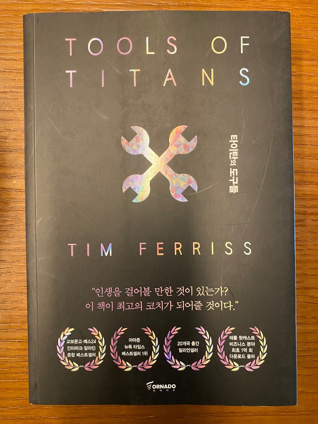 뜻밖의 발견이 있었다. 다름 아닌, "타이탄의 도구들". 이미 2017년에 발간된 유명한 베스트셀러이지만, 그때는 해외에 살고 있어서 만날 수 없었던 책이었다. 하지만, 오래된 책이 신간 책들에 섞여서 내 눈앞에 딱 나타났다! 아마 누군가가 읽다가 신간 책들 위에 올려놓은 것 같은데, 이건 읽으라는 하늘의 계시가 아닌가!!