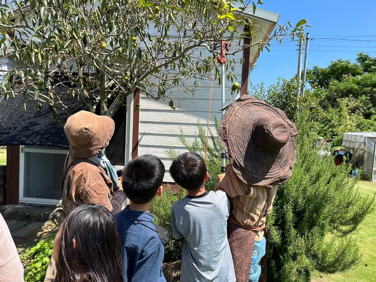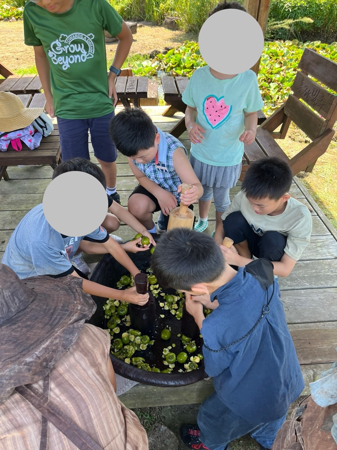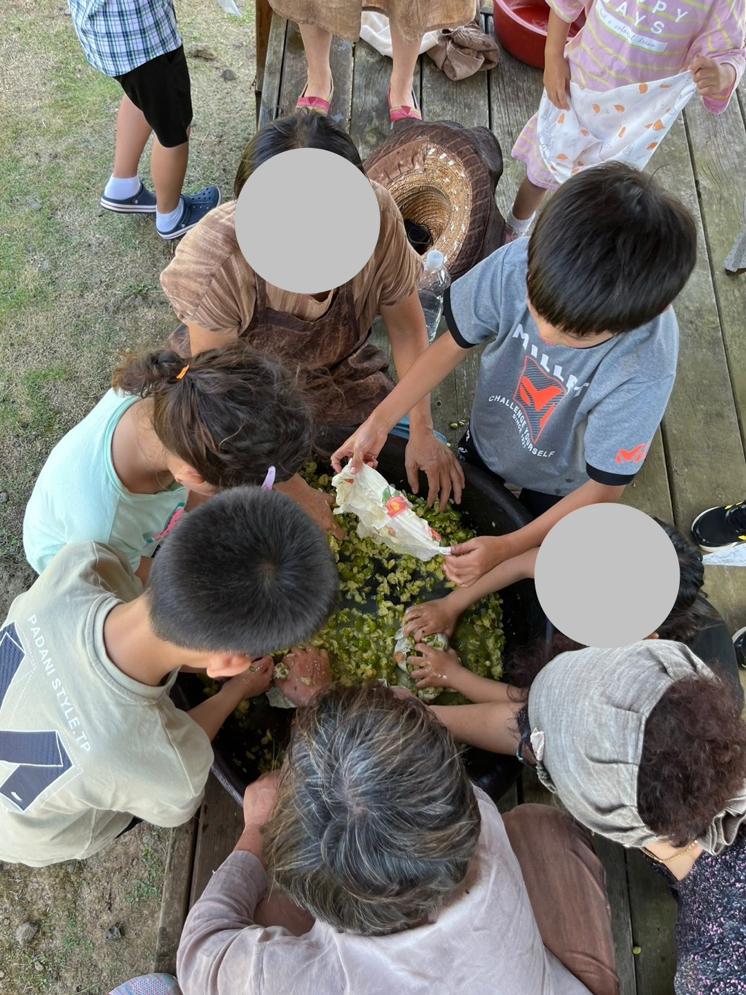 육아 공동체 가족들과 감물 들이기 체험을 했다. 제주도에 10년 살면서 이제야 해 보다니,….
