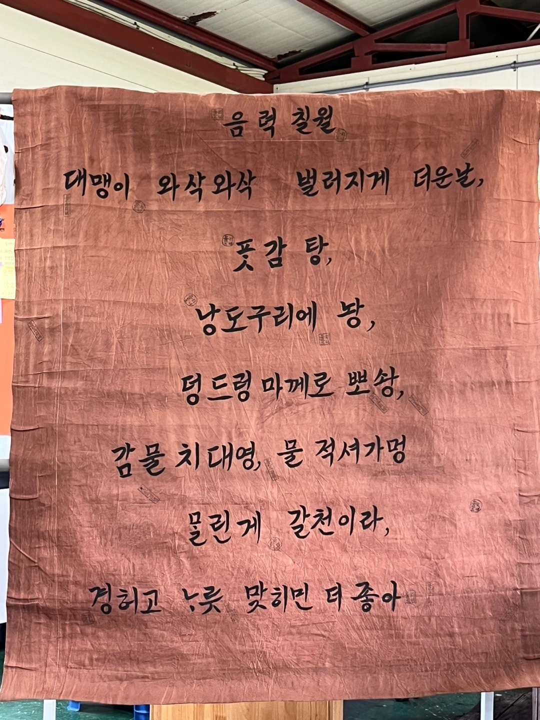 감물을 잘 들게 하는 세 가지 요건이 있는데, 첫째 강력한 자외선, 둘째 높은 습도, 셋째 높은 온도다. 그래서 제주도 8월(음력 7월)이 감물 들이기 딱이다.