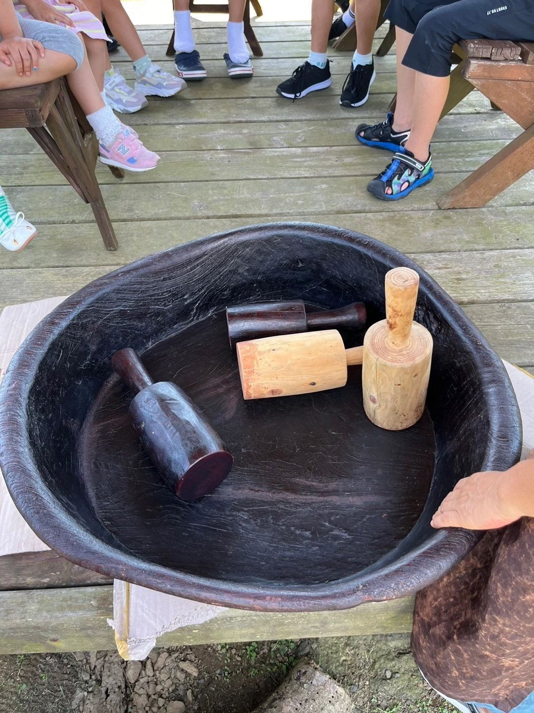둥그런 방망이로 찧어