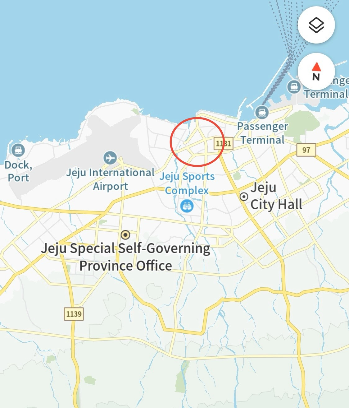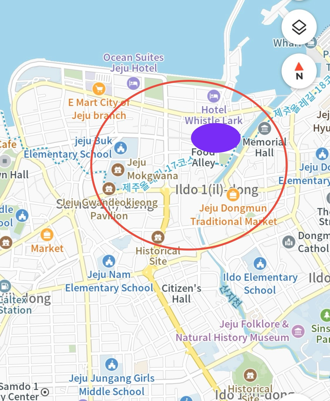 세월이 흐름에 따라 인구 증가와 함께 도시의 팽창으로 신도시가 생겨나면서 원도심은 점점 사람들의 발길이 줄어들고, 물리적 공간으로써도 노후가 진행되었다. 드디어 제주도가 역사와 문화가 깃들여 있는 원도심을 내버려 두지 않기로 했다. ‘원도심 재생 프로젝트‘를 야심 차게 기획하고 진행했으며, 그중 하나로 고씨주택이 제주사랑방으로 다시 태어나게 된 것이다. 위 지도에서 보라색 타원형이 고씨주택의 위치다.(타원을 너무 크게 그렸네 ㅠ)