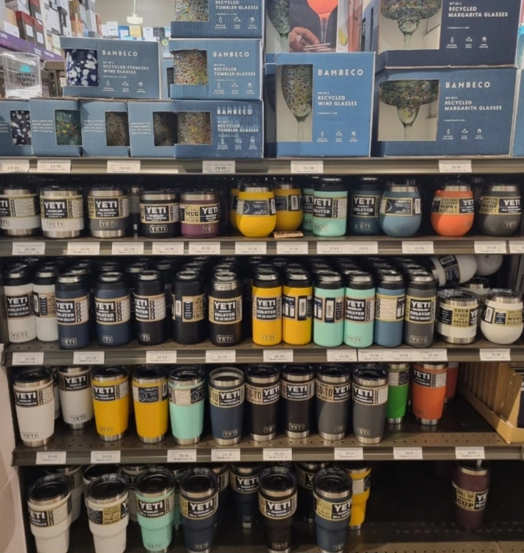 그중에서 텀블러계의 람부르기니 라는 YETI 텀블러가 다양하게 진열되어 있었다.