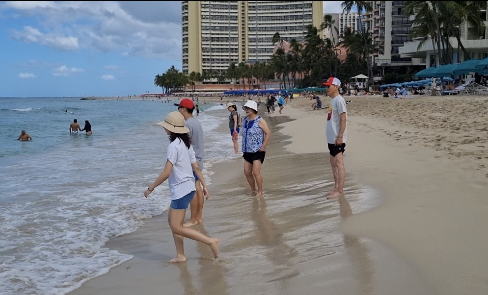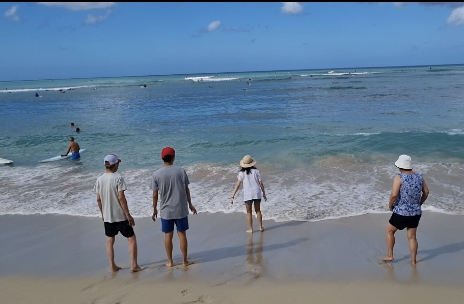 오늘도 역시 VIP 라운지식당에서 아침식사를 맛있게 한 후 부모님과 조카들을 데리고 바로 앞 와이키키해변으로 산책을 나갔다.