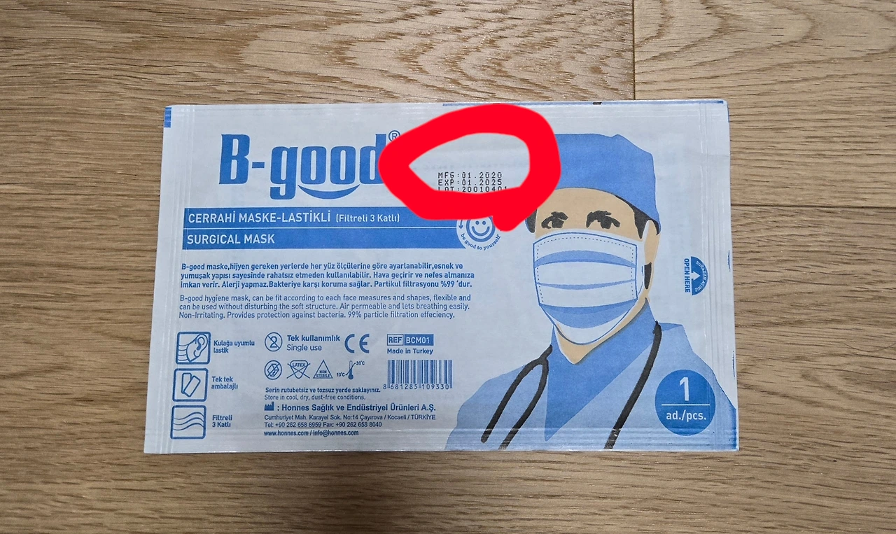 가이드분께 선물받았던 의료용 마스크한장을 기념으로 남겨두었다.(유효기간이 2025년임)