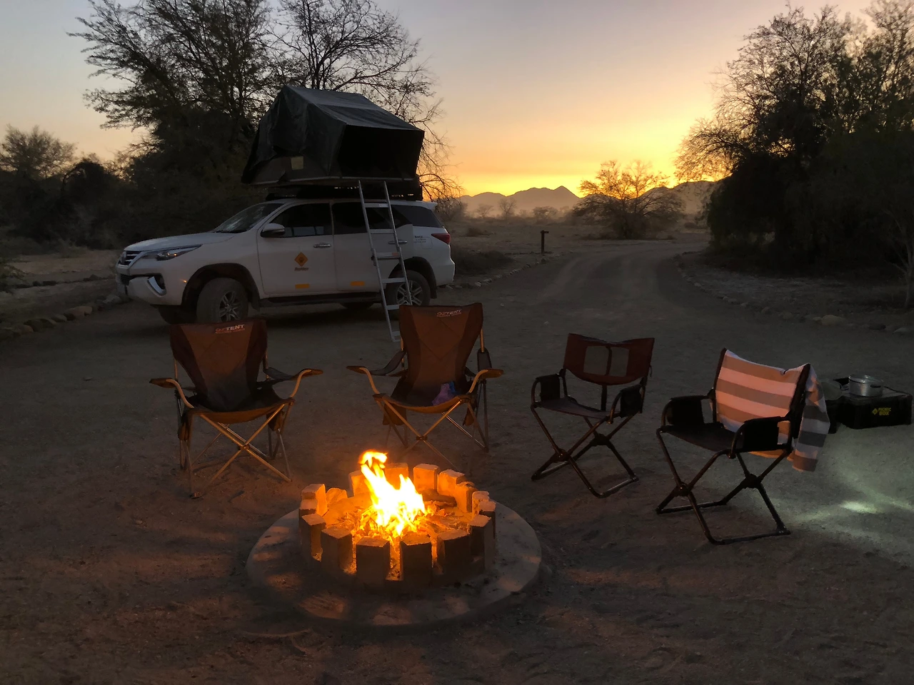 나미비아에서의 첫 캠핑이었기에 모두가 신나고 설렜던 날이다. 빈트후크에서 공수해 온 고기로 스테이크를 굽고, 꼬챙이에 끼운 소시지를 모닥불 직화로 구웠다. 저녁을 먹고나서는 모닥불 앞에 앉아 지는 해와 밤하늘의 은하수, 그리고 무수한 별들을 바라봤다. 우리의 밤이 덜 깊었는데 모닥불이 약해진다 싶으면 장작을 더 넣었고, 자금관리인 내가 쪼잔하게 굴며 장작대신 쓸 마른 나뭇가지들을 주우러 다녔다. 그렇게 몇 번을 더 불을 지폈고 맥주 한 잔에 미래의 일들을 떠들고, 또 한 잔에 추억을 이야기했다. 그러다 어느 순간 이제는 잠잠해져가는 불씨를 그냥 두어야겠다는 생각이 들 때 즈음 다음날 아침 일정을 괜시리 상기하며 각자의 잠자리로 들었다. 나미비아의 기후와 대지는 황량했지만 우리는 아니었다.