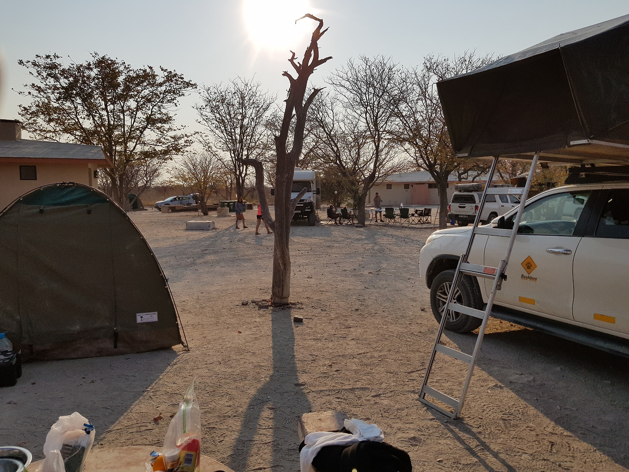 에토샤국립공원에는 크게 마을 세 곳이 있다. Okakuejo, Halali, Namutoni인데 우리가 머물렀던 곳은 가운데 마을인 Halali이다. 사실 마을이라고 부르기는 좀 그렇고 NWR에서 운영하는 숙소, 캠프사이트, 식당, 매점 등이 밀집한 인간의 숙식해결을 위해 마련한 공간이다. 울타리가 쳐져있어 야생동물이 들어오기 쉽지 않아 비교적 안전하며 우리와 같은 캠프사이트 이용객들을 위한 간단한 전력 공급원이나 샤워장까지 구비되어 있다.