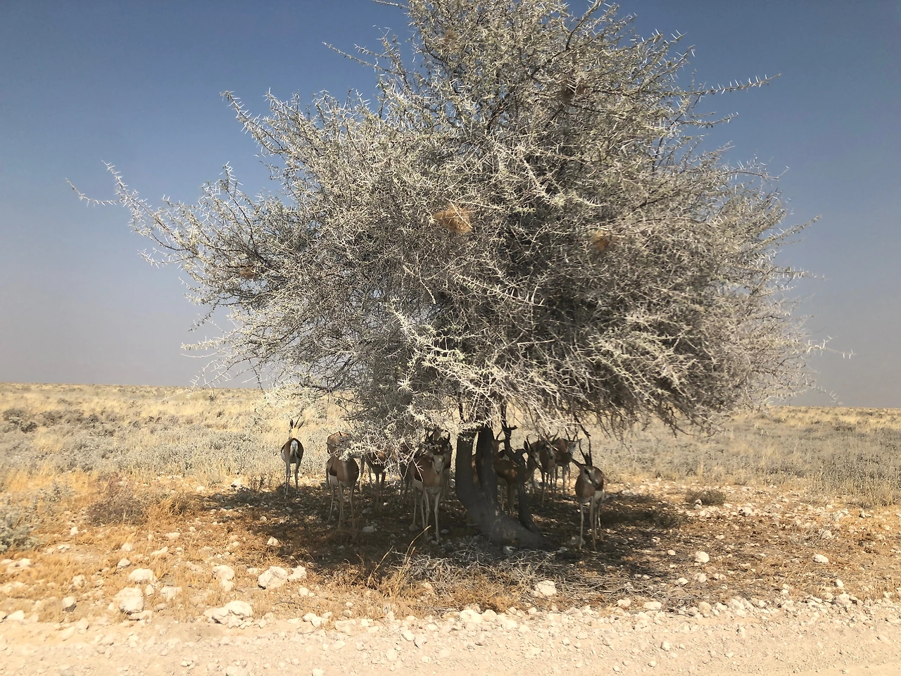 또 새롭게 알게 된 사실은 육식동물이 훨씬 보기 힘들다는 점이다. 치타, 표범, 하이에나는 보지도 못했고 사자는 등짝과 꼬리만 봤다. 왠지는 모르겠지만 개체수도 적을테고 사냥을 하려면 몸을 드러내고 다닐 일이 적지 않을까 싶다. 인간이 차를 타고 다니는 길은 거의 개활지이기 때문에 몸을 숨기고 싶어 하는 동물들에게는 더없이 좋지 않은 장소일 것이다. 그나마 제대로 본 육식동물은 자칼이었는데, Halali 연못에서 물을 마시는 모습과 (국립공원 밖) 길가에서 안타깝게도 로드킬 당한 모습이었다.