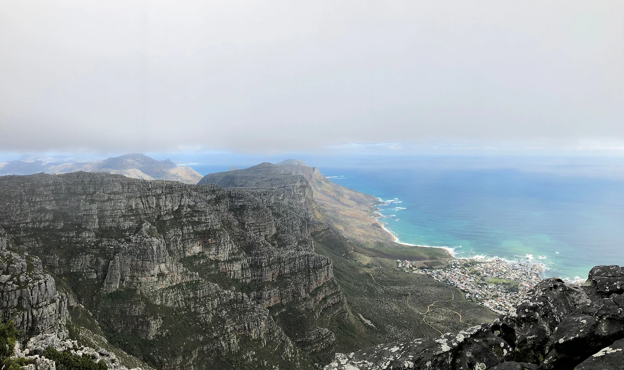 황홀한 절경은 하지만 오래가지 않았다. 구름은 우리가 딱 테이블 마운틴의 진면목을 느낄 시간만 주고는 다시 몰려왔다. 딱 절정에서 우리는 테이블 마운틴을 볼 수 있었다. 감사하게도 산 아래에 내려오니 푸른 하늘과 바다가 산과 어우러져 있었다. 뒤를 돌아보니 테이블 마운틴은 다시 구름에 둘러싸여 있다. 우리가 아쉬움만 남길까 측은한 마음에 하늘이 선심을 쓴건 아니었을까.