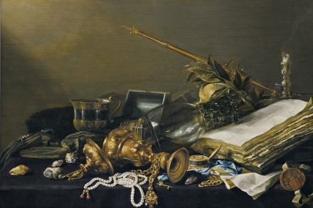 으스러져가는 초가 점처럼 작아진 마지막 불꽃을 태워 보내고 있다. 그 옆으로 진귀한 보석과 그릇이 어지럽게 나뒹군다. 알알이 반짝이는 진주 목걸이, 먼 바다에서 온 듯한 소라고둥, 활짝 열린 보석함 속의 금줄. 그러나 이 화려한 물건들은 왜인지 쓸모 없어 보인다. 아무리 값비싼 것일지라도 소유자가 죽고 나면 무의미해진다. 서 있지 못하고 옆으로 엎어진 잔이 무용한 것처럼 말이다.