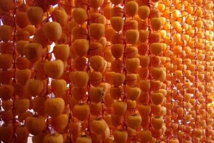 도로를 따라 시골 가게들이 정겹게 몇 집 나란히 늘어서 있는데 , 서로 약속이라도 한 듯 곶감을 만들기 위해서 껍질을 깎은 감들을 주렁주렁 매달아 놓았다.