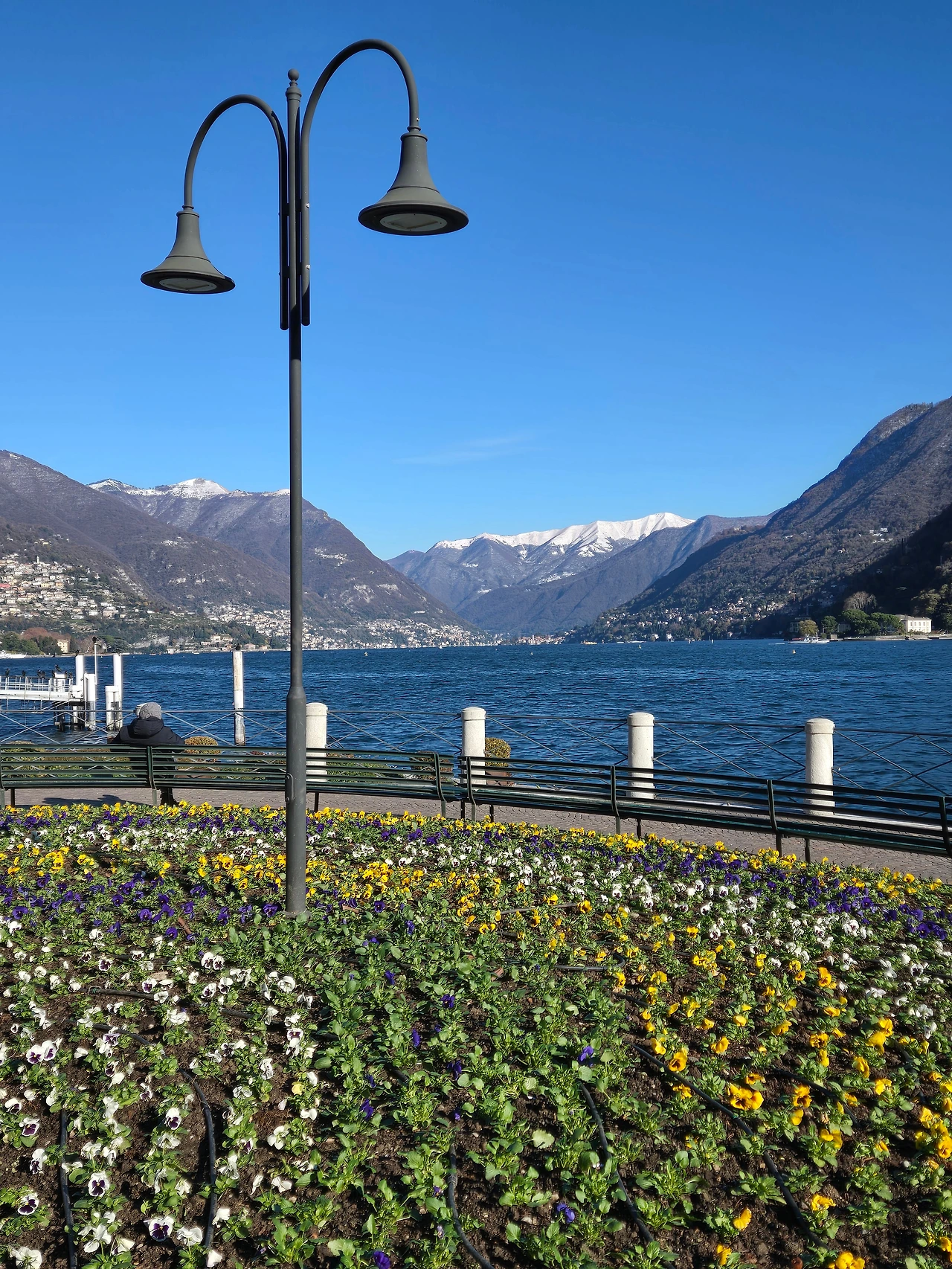 겨울이 문턱을 넘어섰지만, 코모(Como)의 주위 풍경은 계절을 잊고 방황하는 것 같다.
