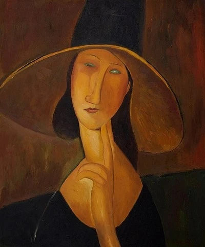 Amedeo Modigliani, 큰 모자를 쓴 잔 에뷔테른, oil on canvas, 53x 37.5cm, 1918, 개인 소장