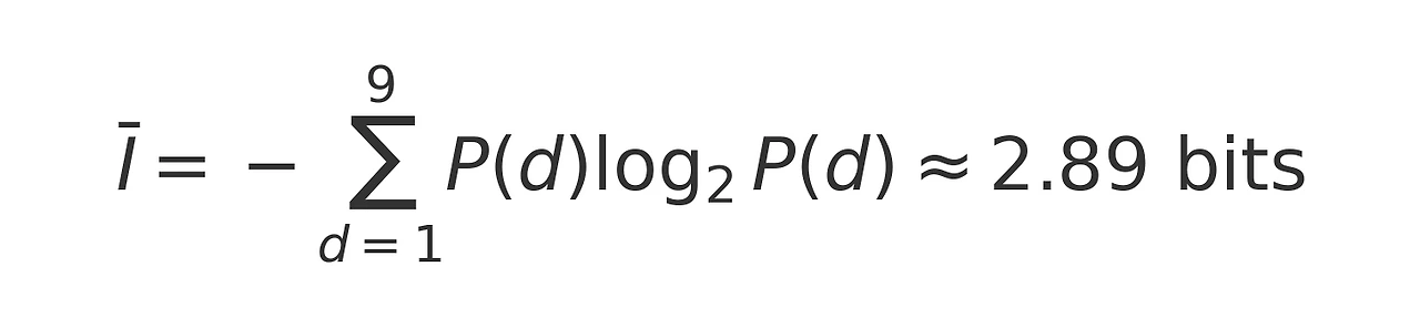그러나 벤포드의 분포는 다음과 같은 정보량 감소 현상을 보여준다:
