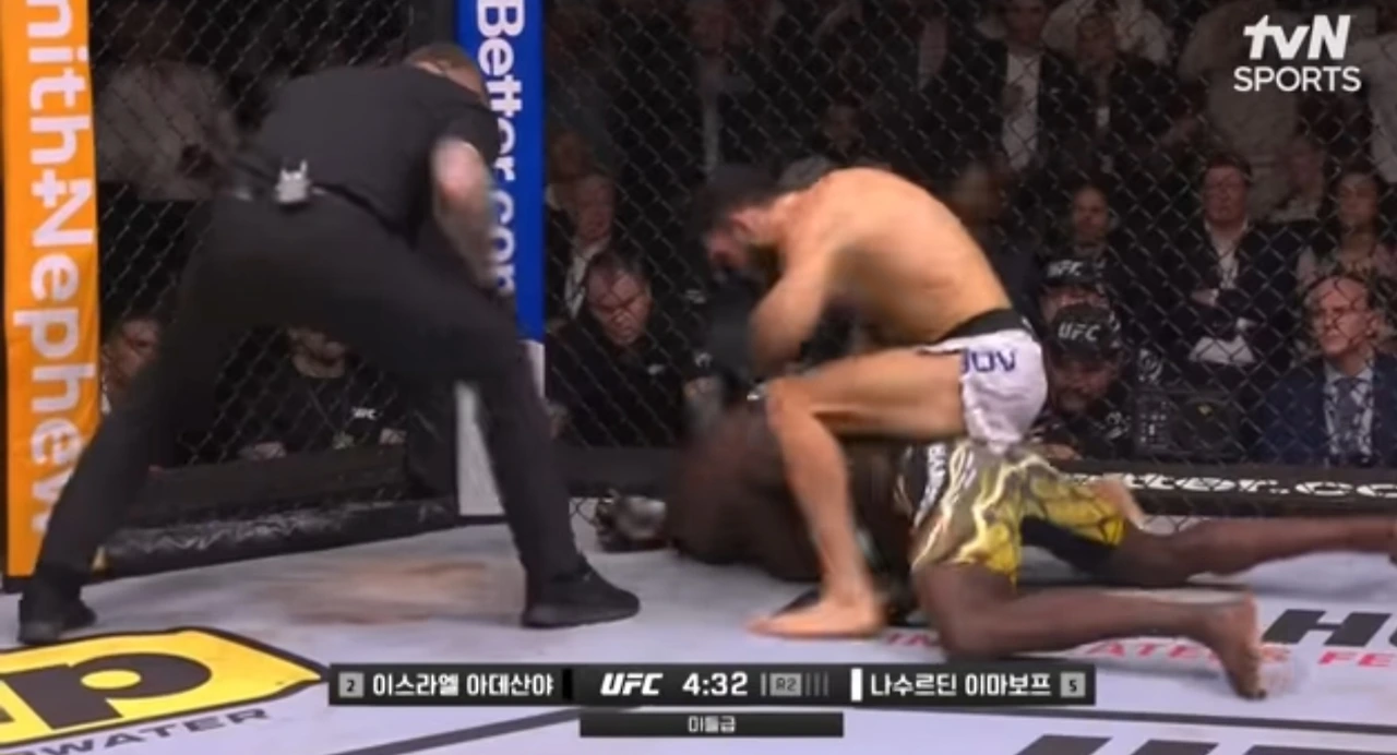 하지만 1라운드부터 아데산야가 전성기 같은 반사신경, 반응속도를 보이지 못했고 아데산야에 킥캐치 당한 후 나수르딘에 펀치가 적중하며 연타로 이어졌고,아데산야가 쓰러지며 나수르딘의 파운딩연타로 나수르딘이 ko승했다.