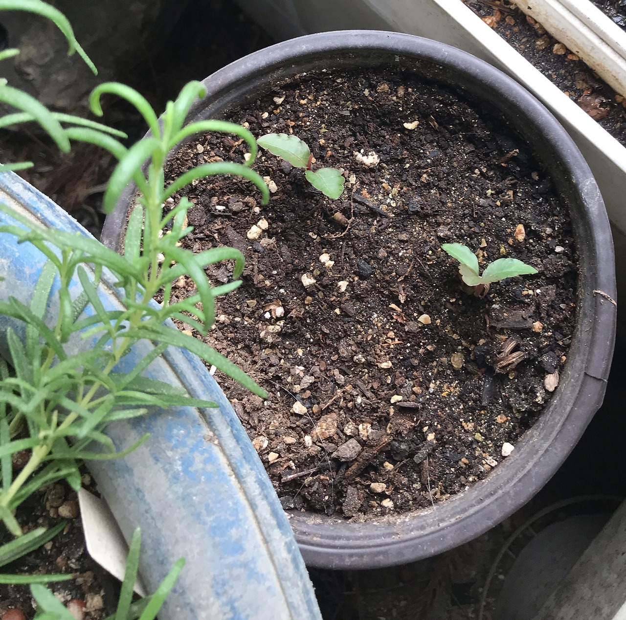 싹은 네 개. 그러나 두 개는 얼마 되지 않아 죽고 두 개의 싹이 살아남았다.