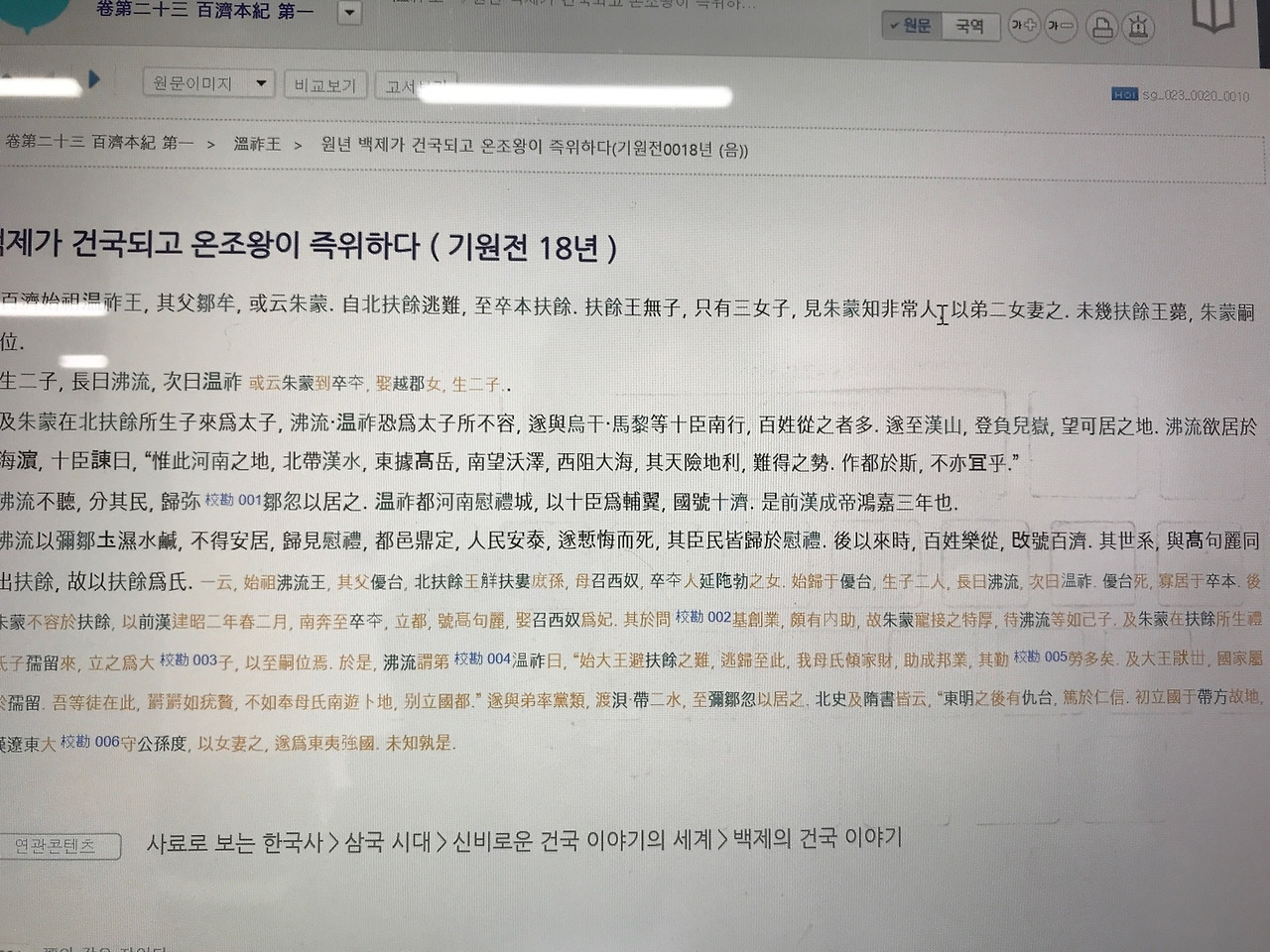 사진; 한국사데이터베이스 소서노 관련 원문