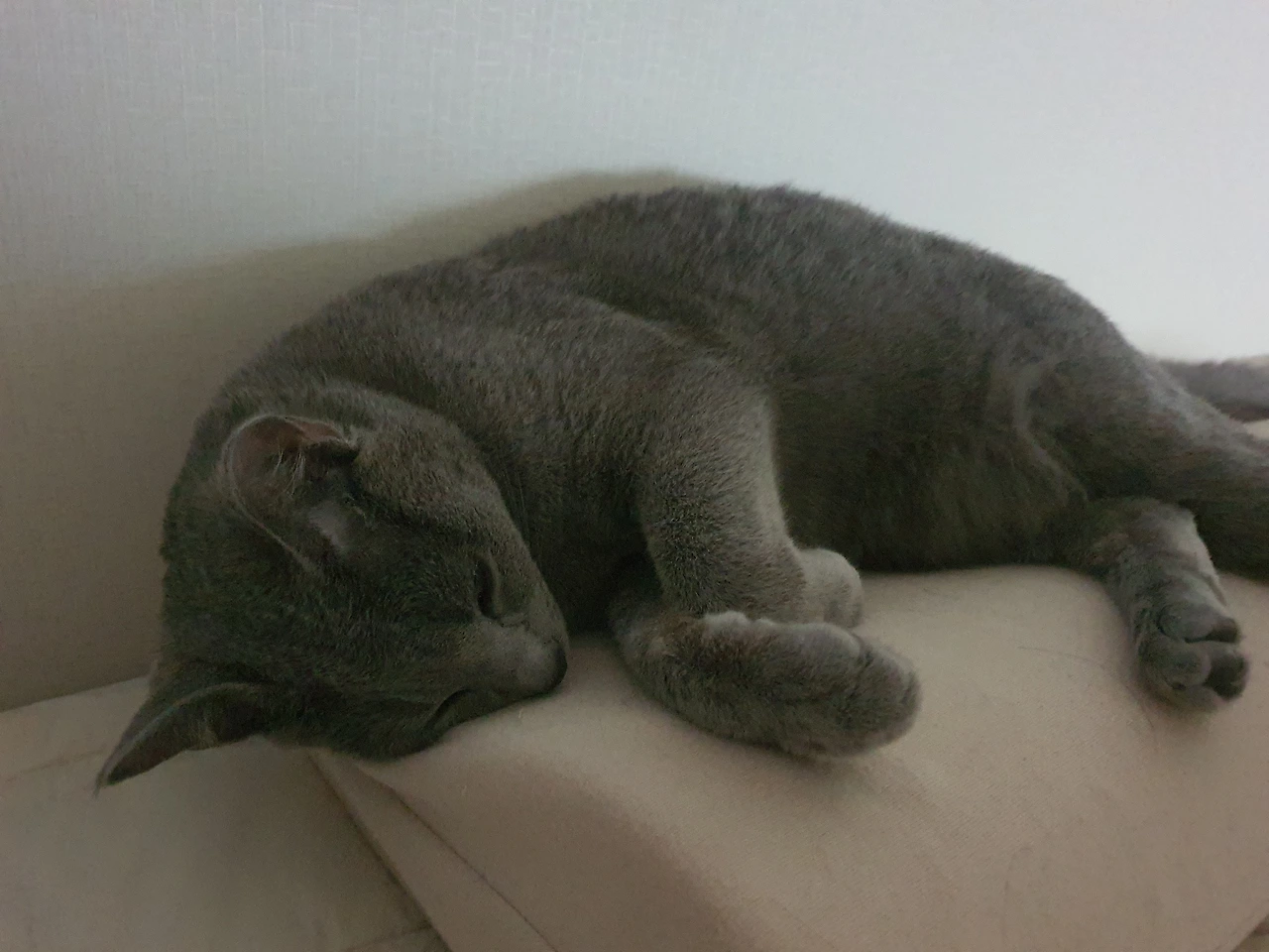 내 회색 고양이는 여름이 되자 약간 갈색을 띄기 시작했다. 몸 전체가 아닌 아주 작은 부위에서만 갈색 털이 나기 시작한 것이다. 이를테면 앞발의 옆면 일부나, 꼬리 옆 털, 목 아래 가슴의 역삼각형 부분 정도였다. 자세히 보지 않으면 알아차릴 수 없는 변화였다. 아무래도 러시안 블루가 아닌 다른 종이 중간에 섞인 모양이었다. 남들이 알아채기 힘든 내 아이만의 사소한 특징들을 발견한다는 건 생각보다 훨씬 기쁜 일이었다. 나는 내 아이를 전보다 더 사랑하게 되었다.