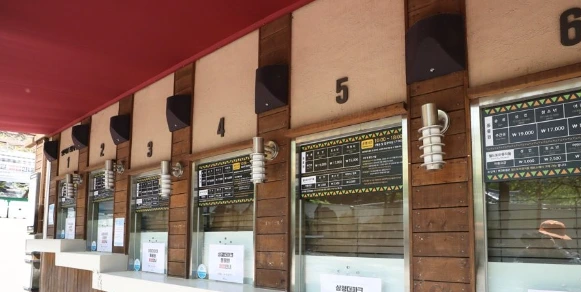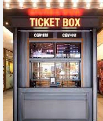 극장이나 기타 다른 장소의 매표소도 window라고 불릴 수 있다. ticket box (매표소)라고 불리는 곳에서 손님이 매표소 안에 있는 사람과 눈을 마주치며 사무를 보는 것을 window라고 한다. ticket box window. 다음은 다양한 ticket box window를 보여주는 사진이다.