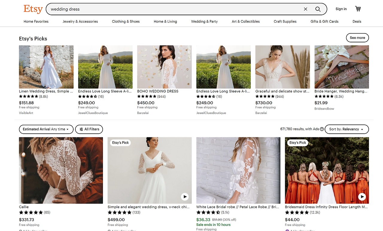 최대 400달러 미만 웨딩드레스를 검색해 이것저것 보는데, 그나마 내 마음에 드는 드레스가 있다. 그런데 사이즈가 한 치수정도 작다.