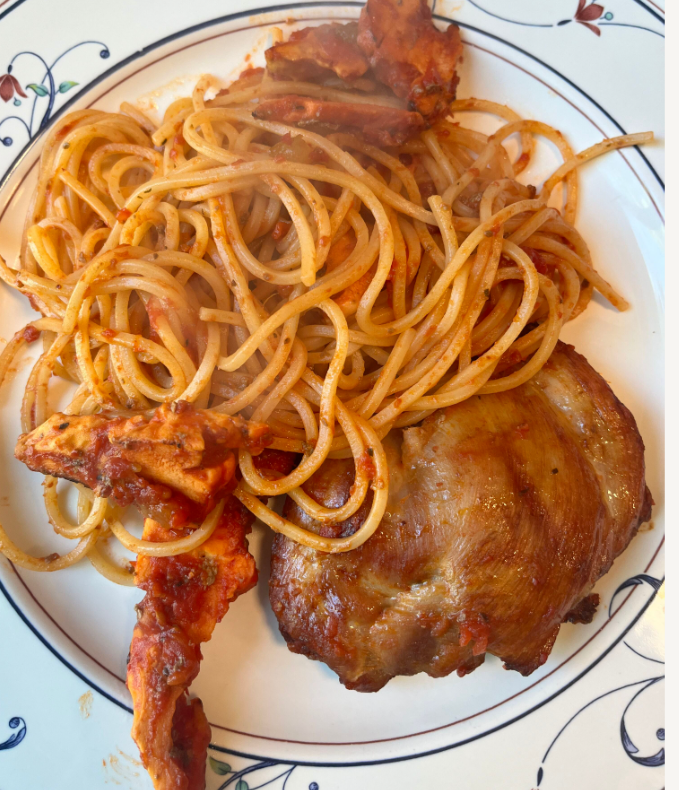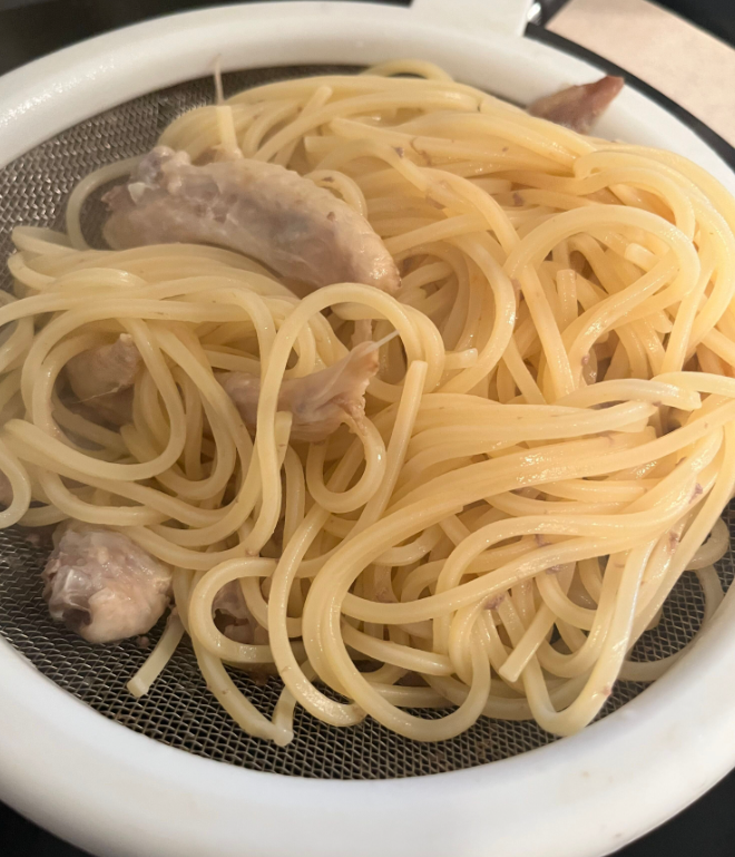 이와중에 스파게티면은 계속 삶고 있다. 어제 치킨윙을 집에서 해 먹으려고 닭 날개를 아주 많이 샀다. 1파운드에 99센트로 아주 저렴한거라고 하면서. 닭 날개 맨 끝은 별로 먹을것이 없다. 하지만 그냥 버리기에는 아까워서 육수 대용으로 스파게티 면을 삶을때 같이 넣고 삶아줬다. 치킨맛을 최고조로 내기위한 갖가지 방법을 다 동원중이다.