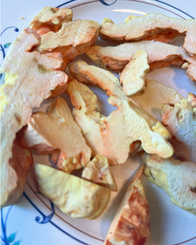 진짜 치킨에 비하면 치킨은 아니지만, 버섯에 비하면 정말 놀라울 정도로 치킨 맛이 난다. 인간이 식물성 치킨, 불고기를 만들기 시작한 것은 얼마 안된다. 자연은 인간이 태어나기 전부터 식물성 고기를 만들고 있었다니 놀라울 뿐이다. 하늘 아래 인간이 하는 모든일은 정말 새로운것이 없다는 말이 실감난다.