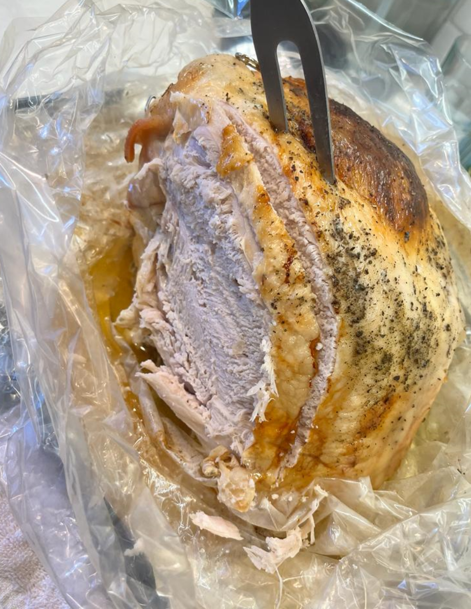30분 정도 터키를 식인후 남편 보고 자르라고 했다. 칼 솜씨가 영 내 맘에 들지 않는다.