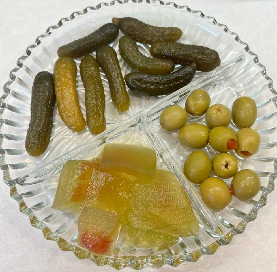 추수감사절 음식은 별거 없다. 터키 가슴살이 메인이고 나머지 사이드는 이것저것 다양하다. 작은 오이 피클, 수박껍질 피클, 올리브를 시어머니의 지시대로 접시에 담았다.
