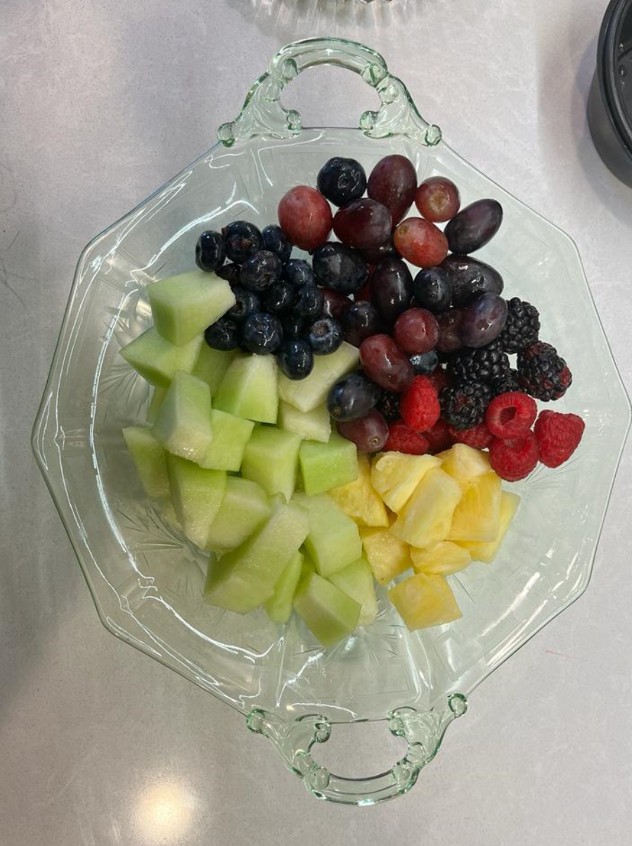 과일샐러드를 다 만들고 나니, 너무 예쁘게 담았다고 칭찬일색이다. 내 눈에는 별로 예쁘지도 않은데...