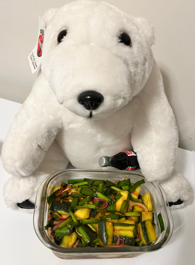아삭하고 싱싱한 오이를 미국마트에서 찾기란 매우 힘들다. 한국 처럼 땅이 좁은 나라가 아니라 싱싱한 과일과 야채를 찾을려면 반드시 운전을 해야 한다. 제철이 아닌 이상 미국 마트 오이는 전부 마르고 맛이 없어 보인다. 이가 없으면 잇몸으로 살아야 하니 일단 이런 오이를 샀다.