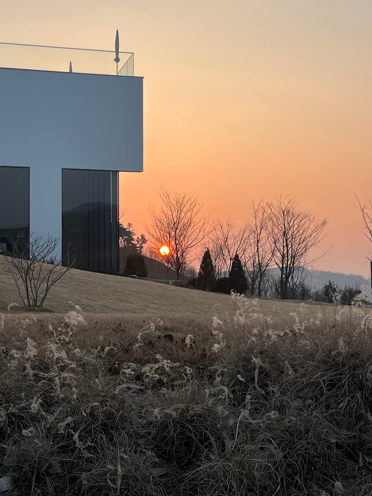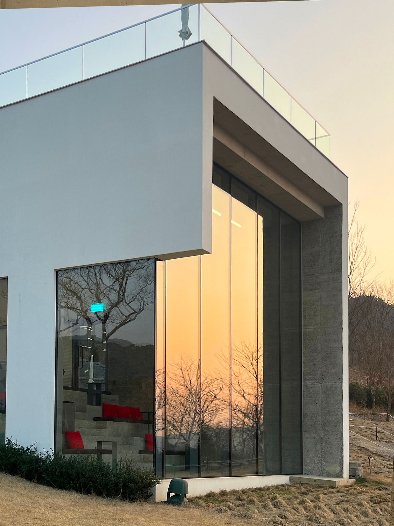 언덕을 올라 처음 카페를 마주할 때 눈길을 사로잡는 것은 건물의 외관의 곡선이다. 자연에 직선이 존재하지 않는다는 관점에서 본다면 곡선은 자연과 닮았다. 그래서인지 자연을 모티브로 전체적으로 곡선으로 설계되었다고 한다. 곡선이 만들어낸 사이 공간은 잘 정돈된 정원으로 메꾸어져 있으며, 여기서 재미있는 모순을 느낄 수 있다. 자연을 대변하는 곡선을 품은 영구적인 건축물과 매순간 변하는 정원의 단정한 모습은 서로가 서로를 가장 돋보이게 존재하고 있다.