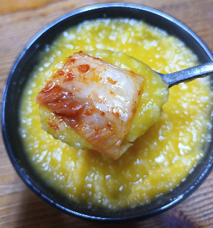 엄마와 마주 앉아 먹는 호박죽.
