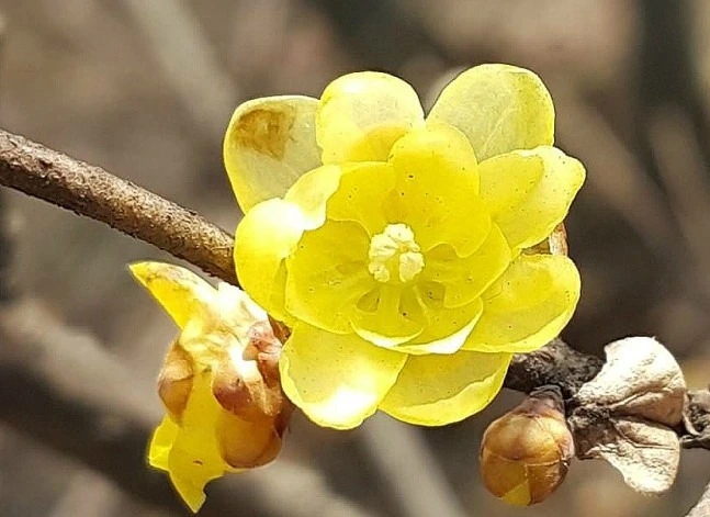 납매는 납매과의 낙엽교목으로, 학명은 Chimonanthus praecox이다.