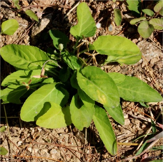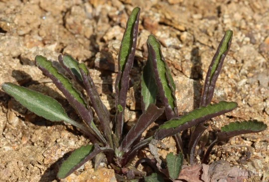 잎자루의 길이는 약 3~8 cm으로 날개가 달렸다. 윗부분의 날개는 좁으나 밑 부분에는 넓은 날개가 달린다. 잎 가장자리에 얕고 둔한 톱니가 있다. 꽃이 진 후에 잎은 점차 넓어진다.
