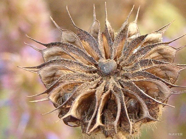 이런 이유로 어저귀 씨방은 그 모양이 왕관처럼 아름답지만 벼락을 맞은 것처럼 검게 탄 것처럼 보인다.