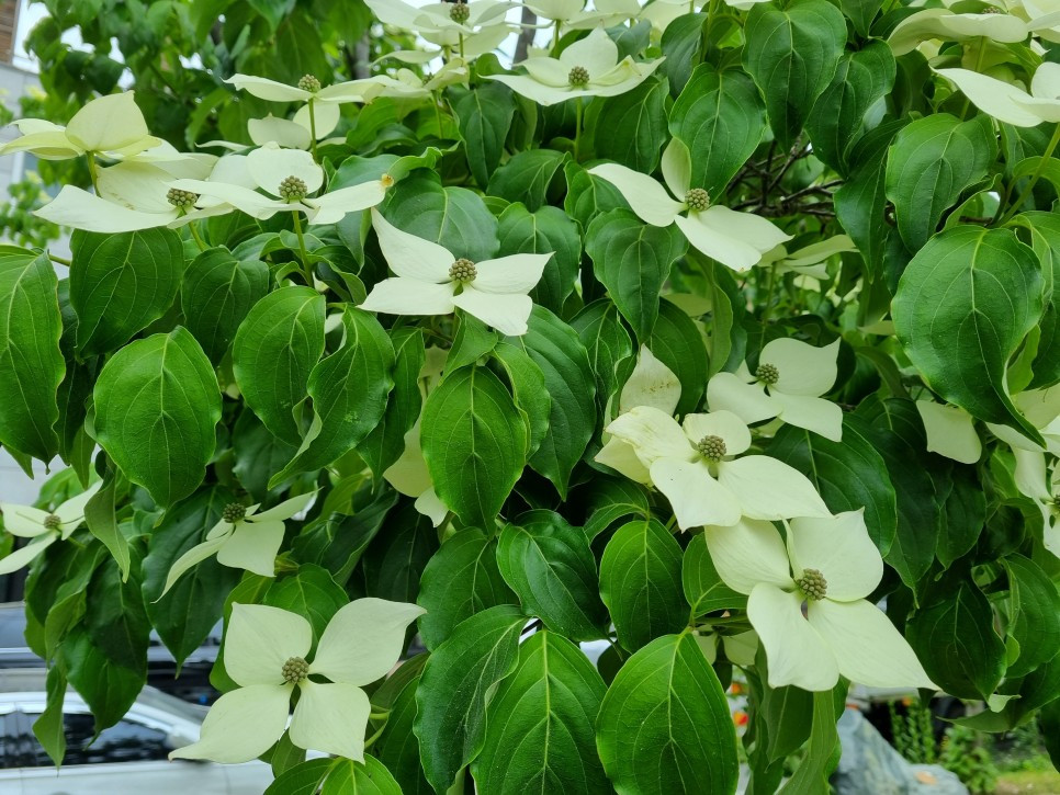 산딸나무 꽃이 한창이다.